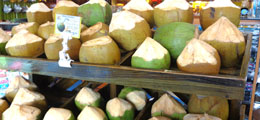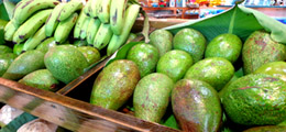 local food market bananas island favorites fresh coconut juice native delicacies freshly baked goodies fresh fruits
